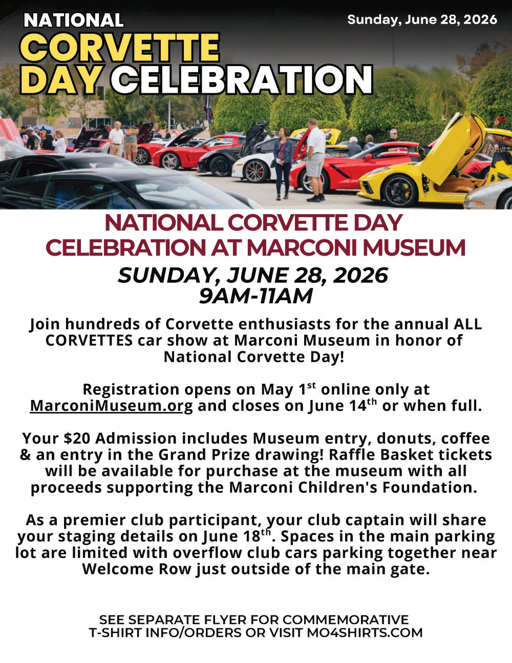 NATIONAL CORVETTE DAY CELEBRATION AT MARCONI MUSEUM